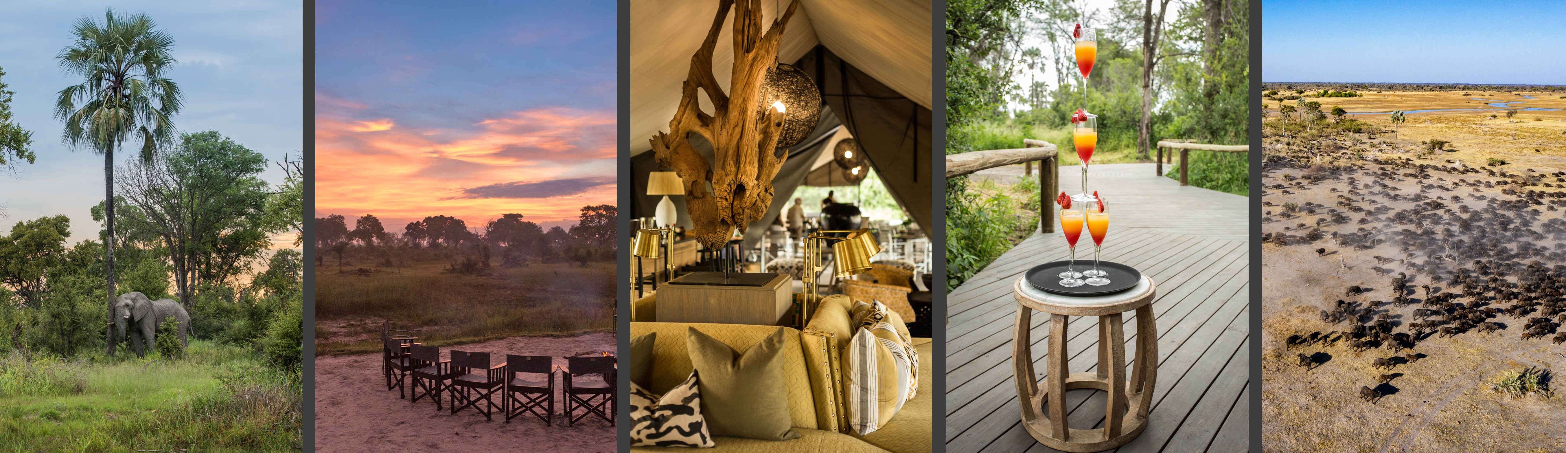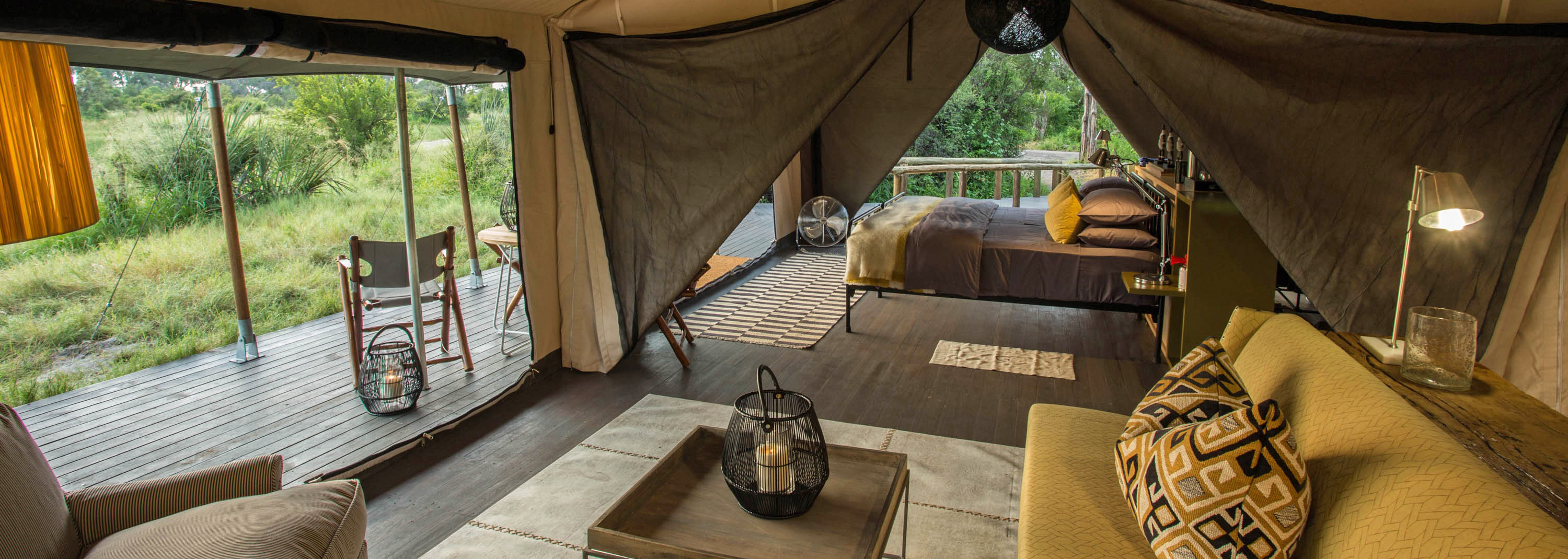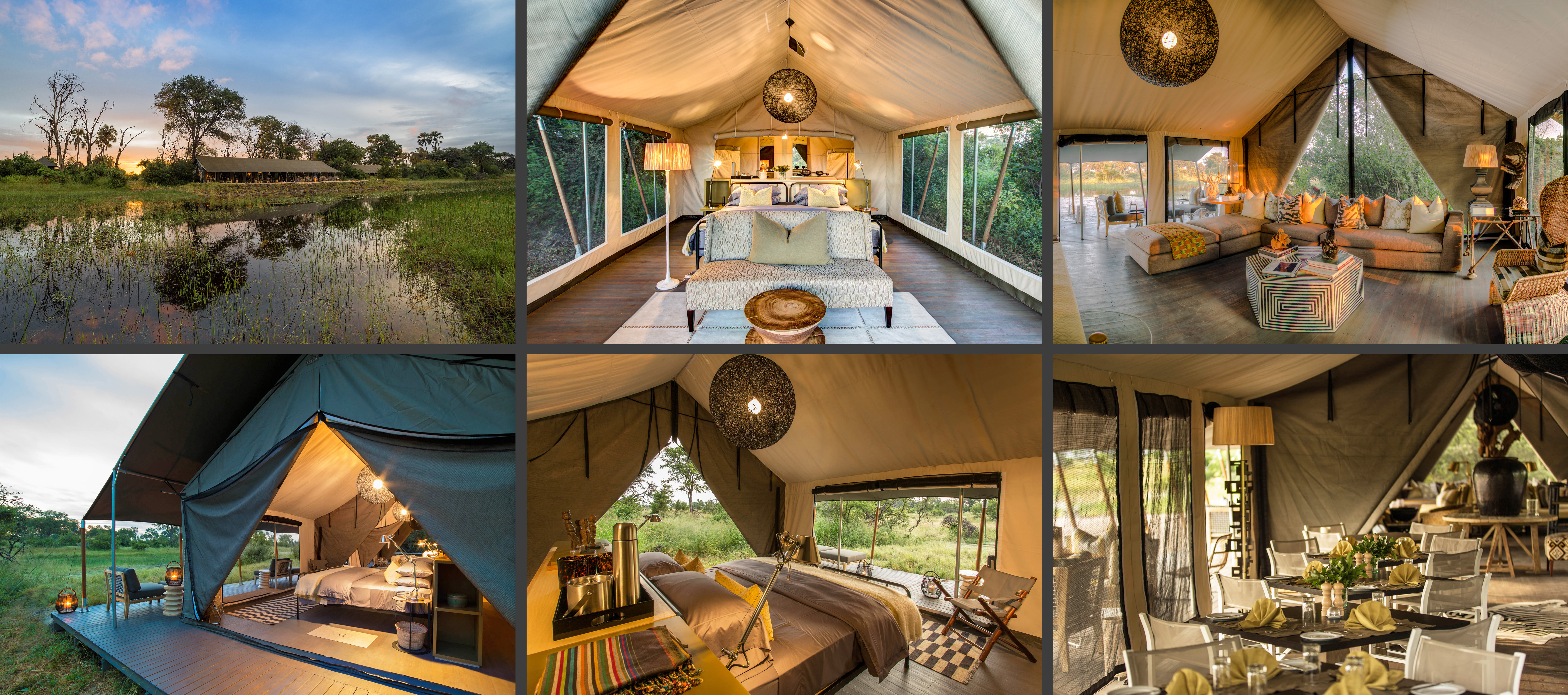 Located in the southern reaches of the Okavango Delta, this area is where the watery maze of canals and lagoons gives way to the northern edge of the Kalahari Desert to create an ecotone (region where two habitats overlap) absolutely bursting with wildlife. Permanent water from the Gomoti River means the camp reliably delivers a well-rounded delta experience throughout the year.