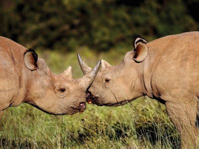 The mighty rhino is a hulking, stoic creature long sought out by safari enthusiasts from all over the world. Marvel at the prehistoric nature of these beasts and realize that in spite of their strong physique and imposing horns, these herbivores tend to silently roam the savannahs and shrub lands on their own, preferring a solitary lifestyle. Thriving in Africa for more than 14 million years, long before ancient man first roamed the savannah, both the White rhino and Black rhino, differentiated by their lip shape and skeletal structure (not color), are facing staggering blows to their population densities due to intense poaching throughout the continent with some subspecies already going extinct. With over 1,000 rhino poached in South Africa in 2013 alone, remaining populations have become increasingly isolated and are constantly at risk of being poached. To see a rhino in the wild is a thrilling and memorable encounter that few people have been lucky enough to experience and will surely be a moment that you will not soon forget. Here are a number of itineraries where your chances are great to see these majestic animals in action.