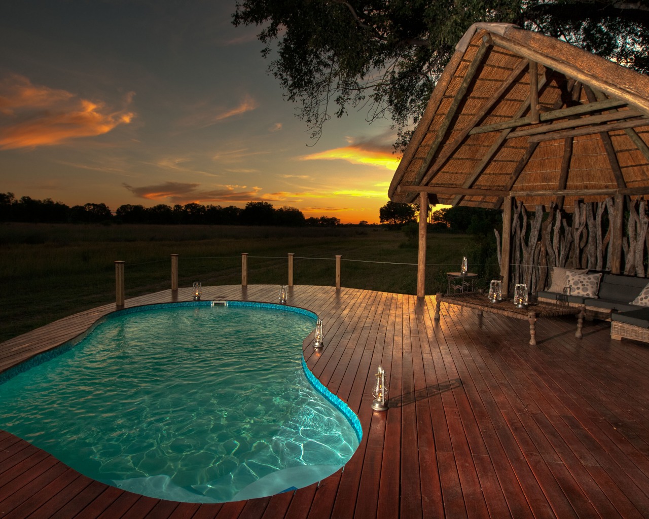 Pool deck area at Chitabe Lediba Camp, Moremi Game Reserve, Botswana (Dave Hamman)