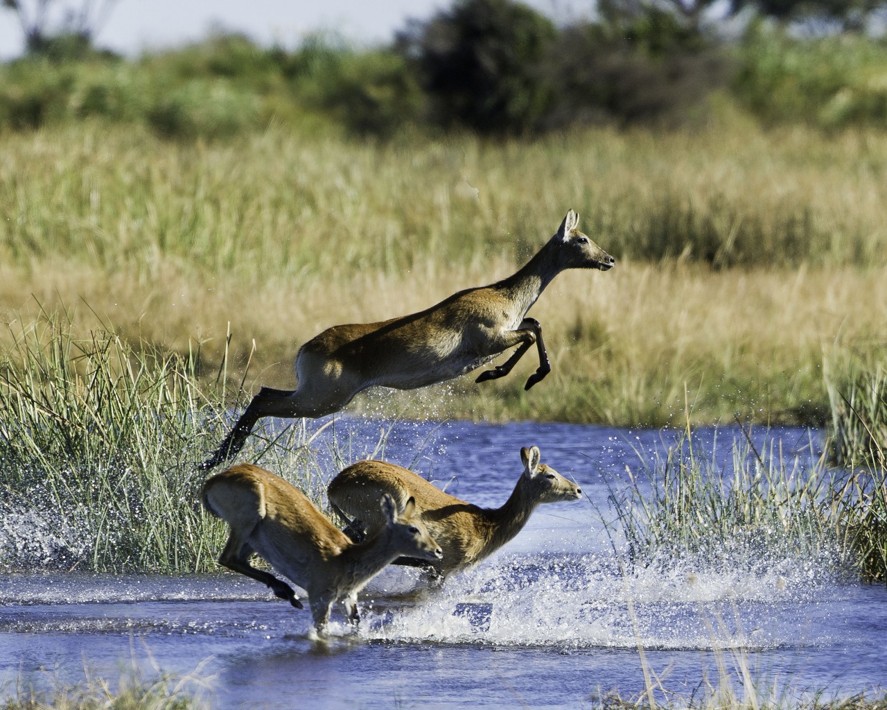 Running through the wetlands at Duma Tau, Linyati Wetlands, Botswana (Dana Allen)