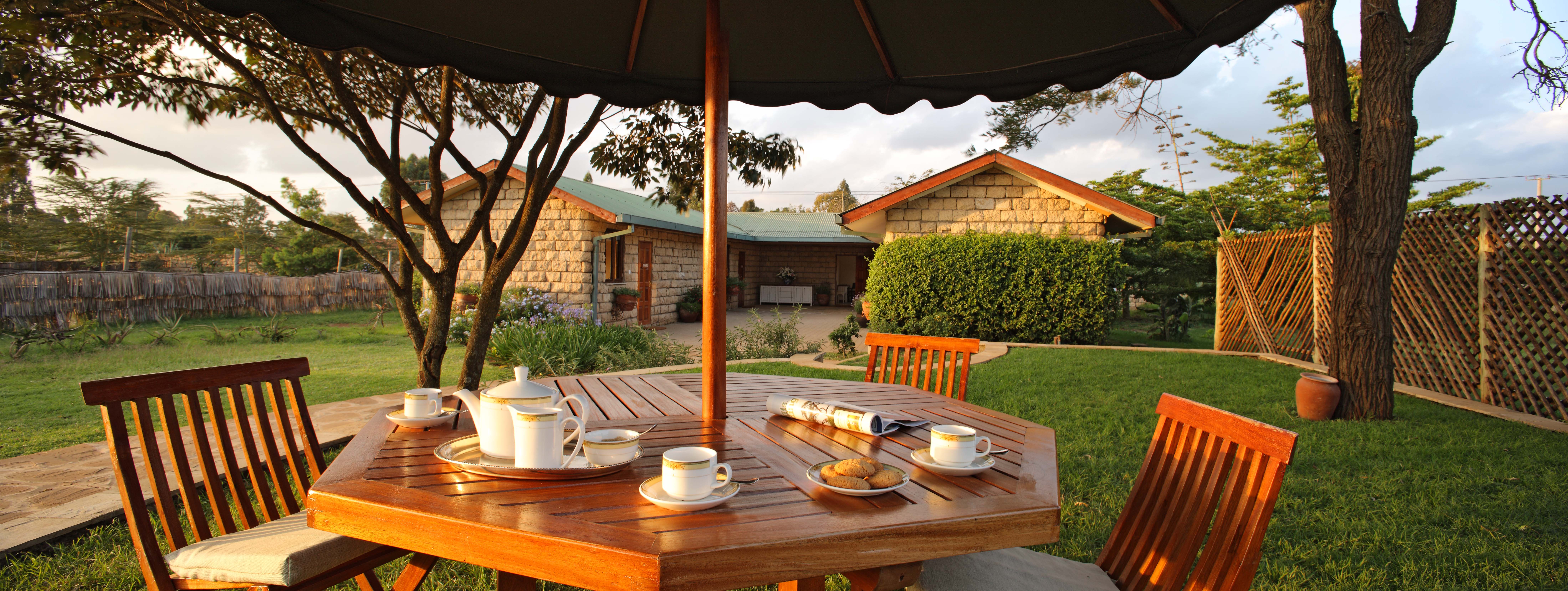 Dining in the courtyard at Hogmead, Nairobi, Kenya
