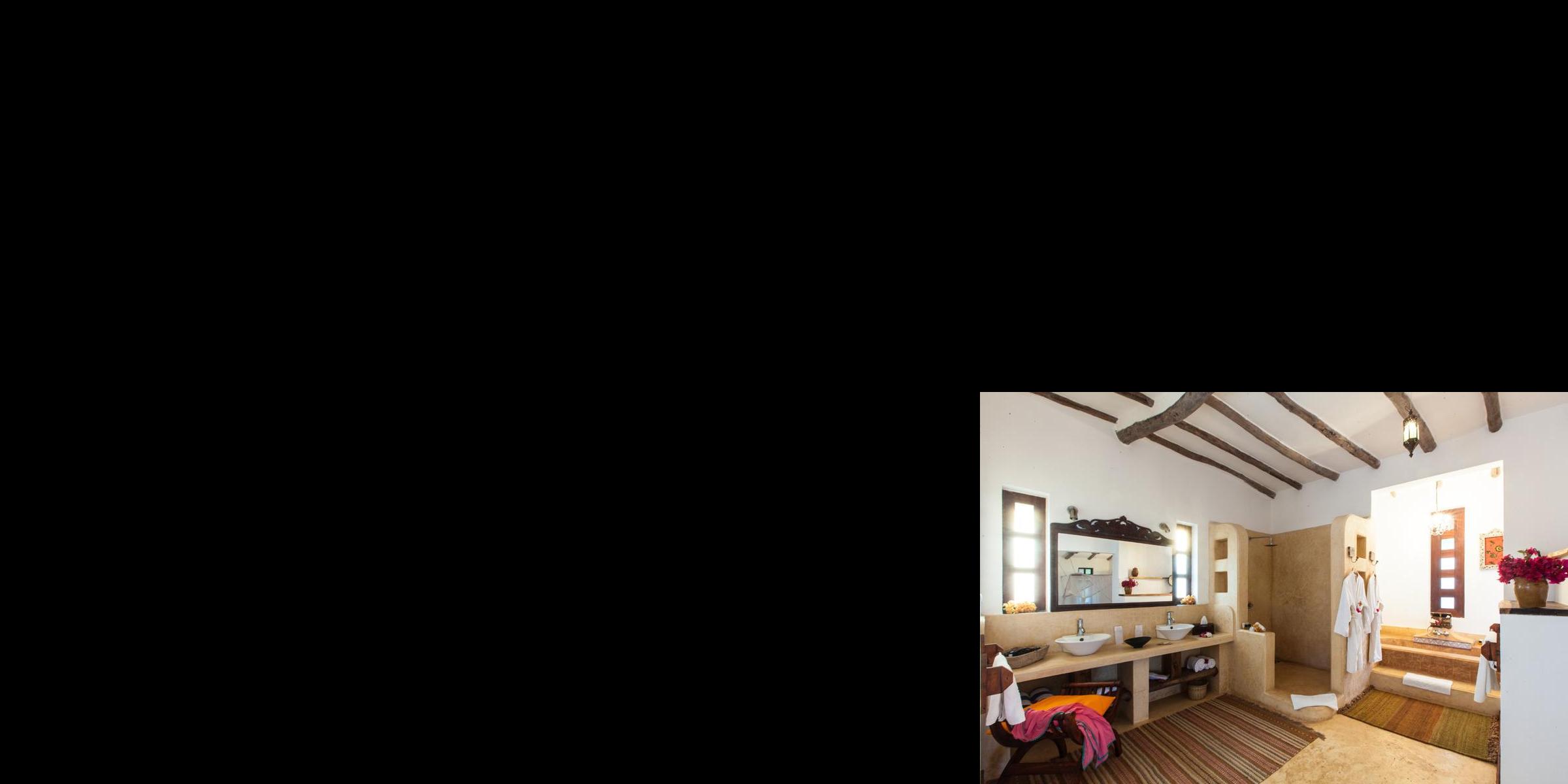 The bathrooms are modern with elements of local design at Kasha Boutique Hotel, Zanzibar, Tanzania