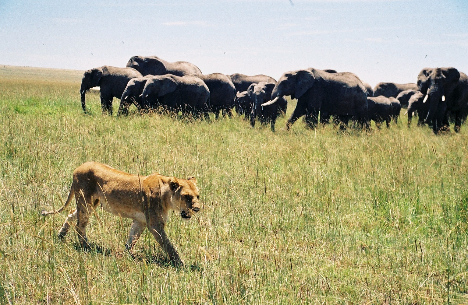 Lioness and elephant family