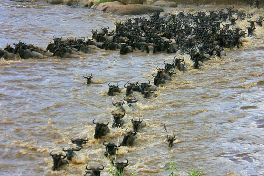 Wildebeest migration river crossing