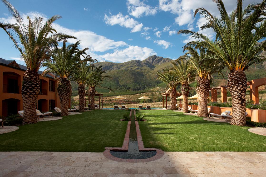 Gardens and the pool at La Residence, Franschhoek, South Africa