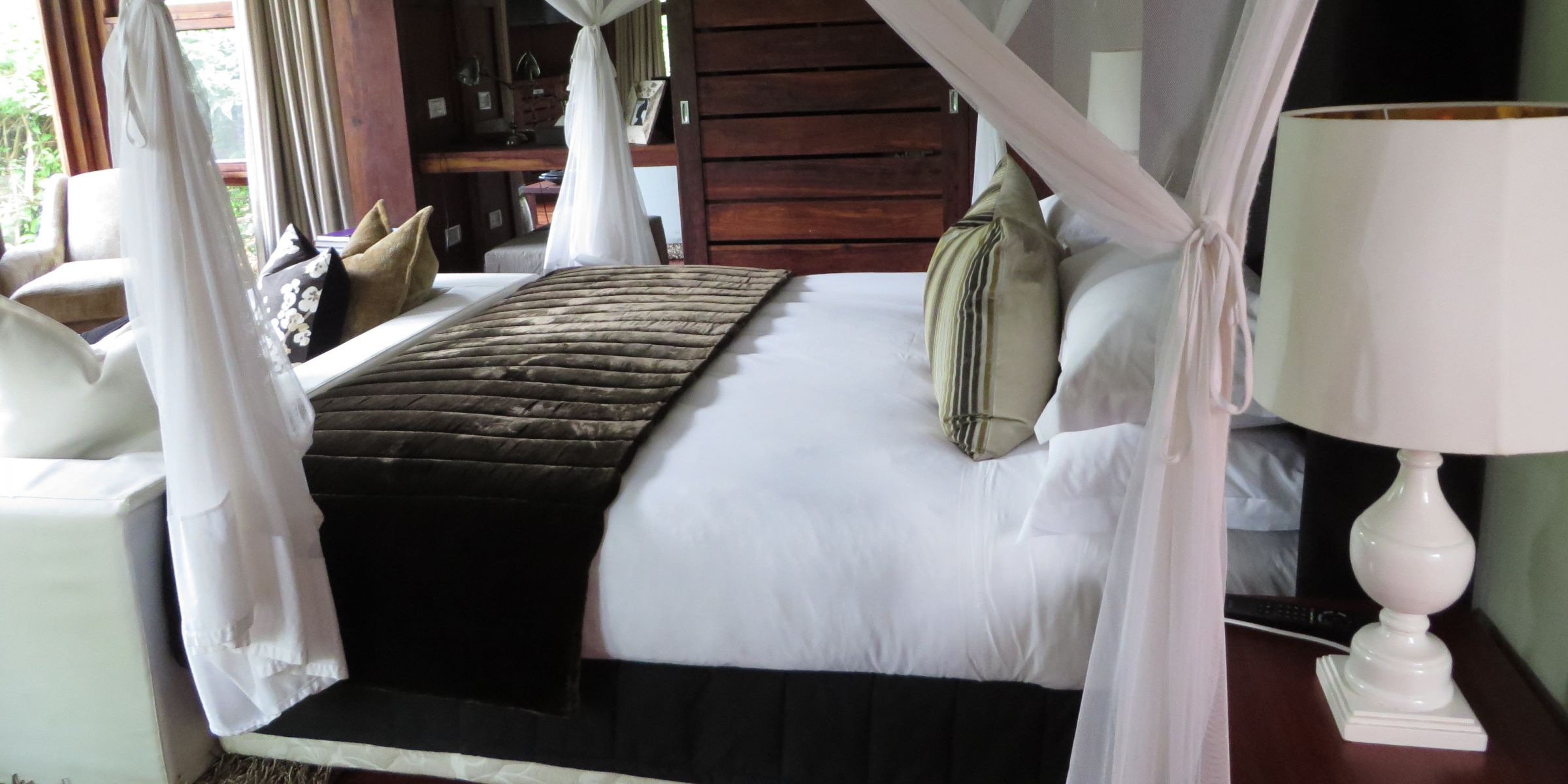 Elegant and comfortable bedrooms are designed to make guests feel at home at Lake Duluti Lodge, Arusha, Tanzania (Mango staff photo)