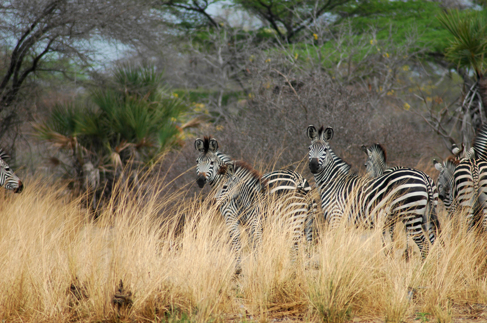 A herd of zebras at Lake Manze Tented Camp, Selous National Park, Tanzania