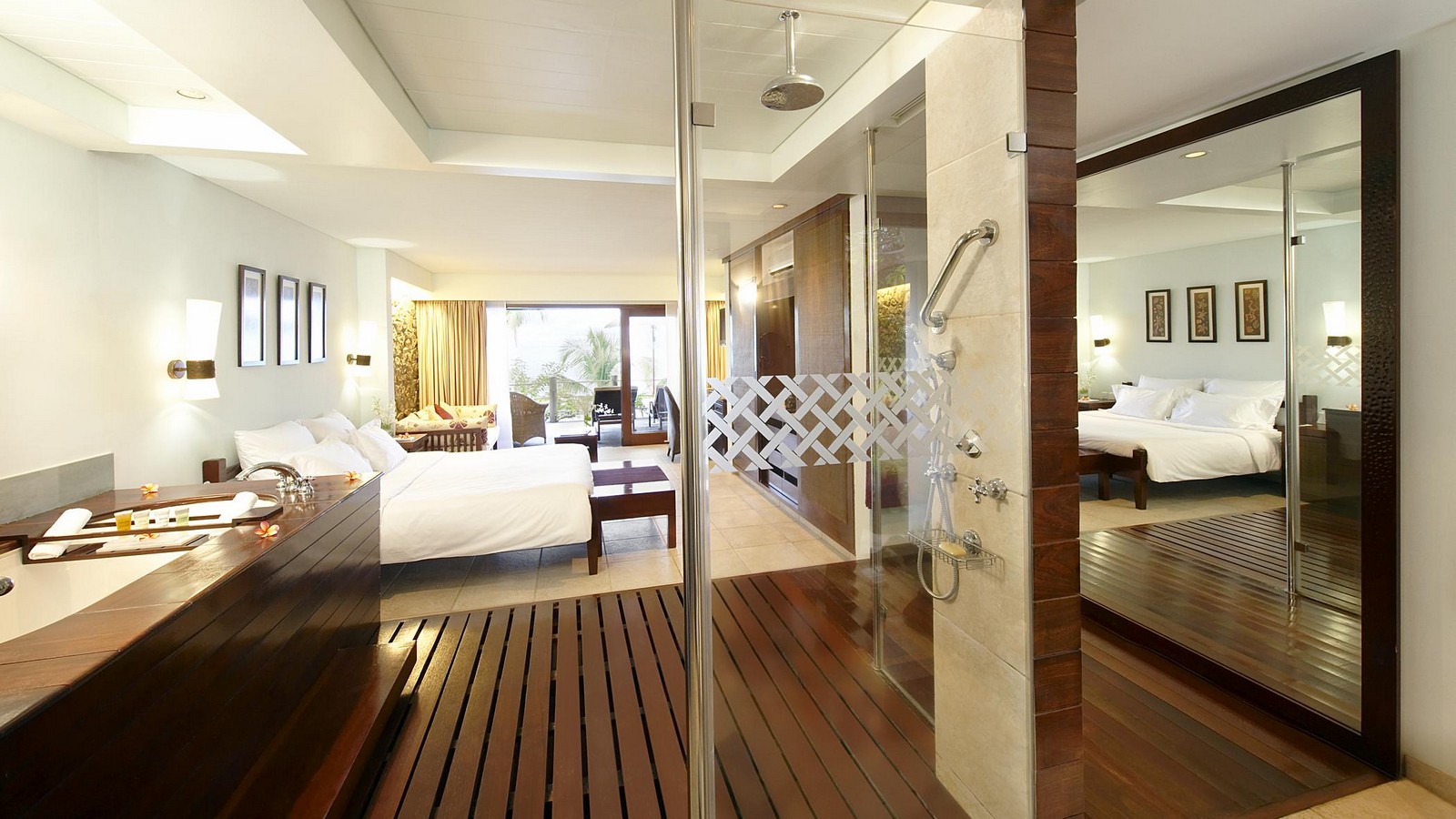 En-suite room layout at Le Meridien Fishermans Cove, Mahe, Seychelles