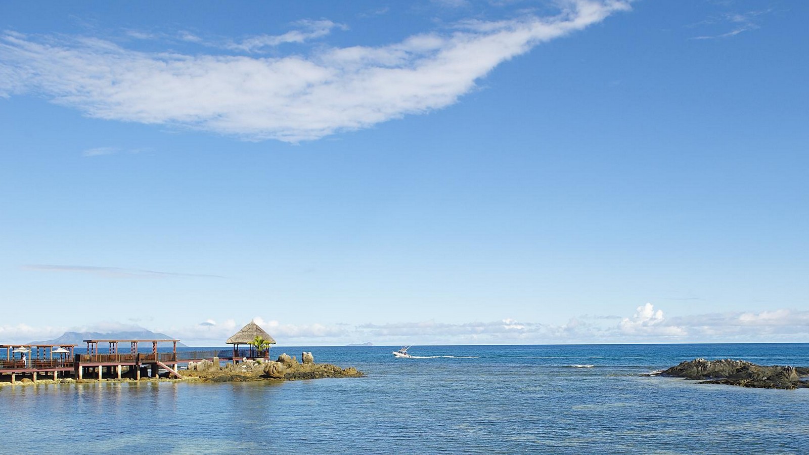 View of the ocean from the hotel at Le Meridien Fishermans Cove, Mahe, Seychelles