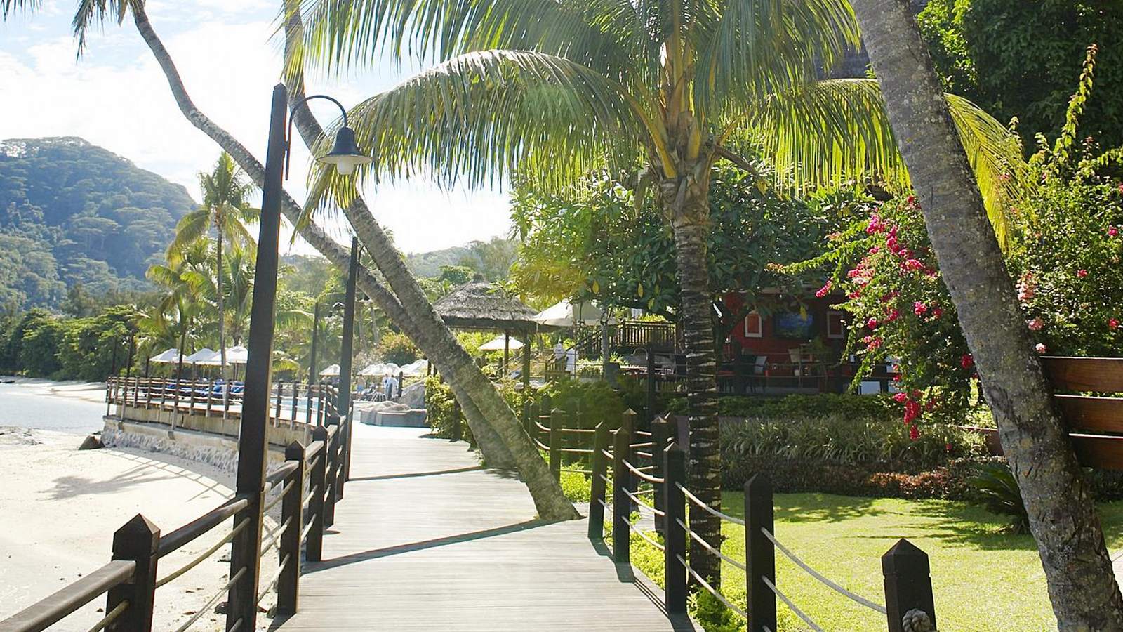 Walkway along the beach at Le Meridien Fishermans Cove, Mahe, Seychelles