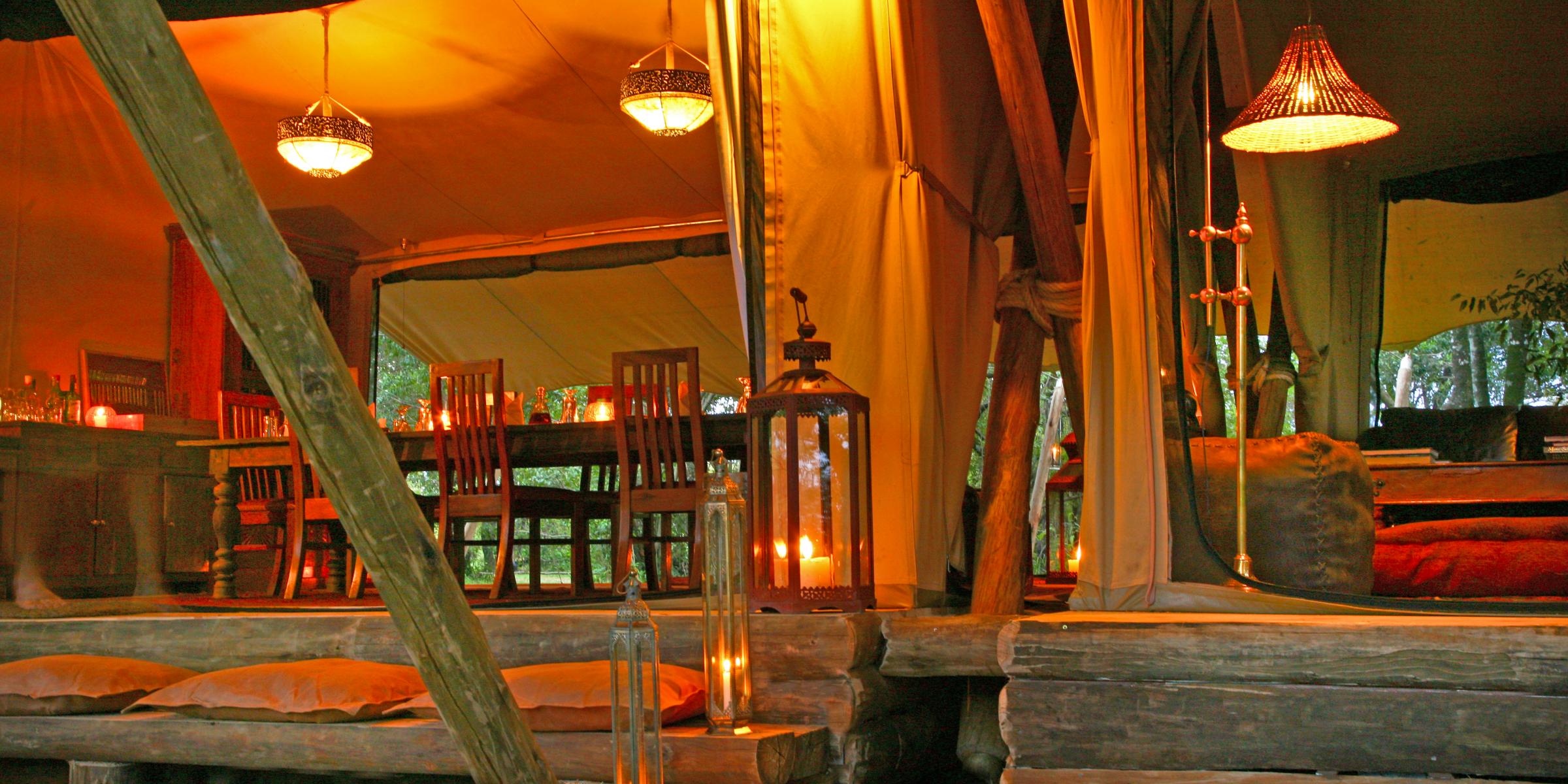 The main lodge has the dining and lounging areas at Mara Toto Camp, Masai Mara National Reserve, Kenya