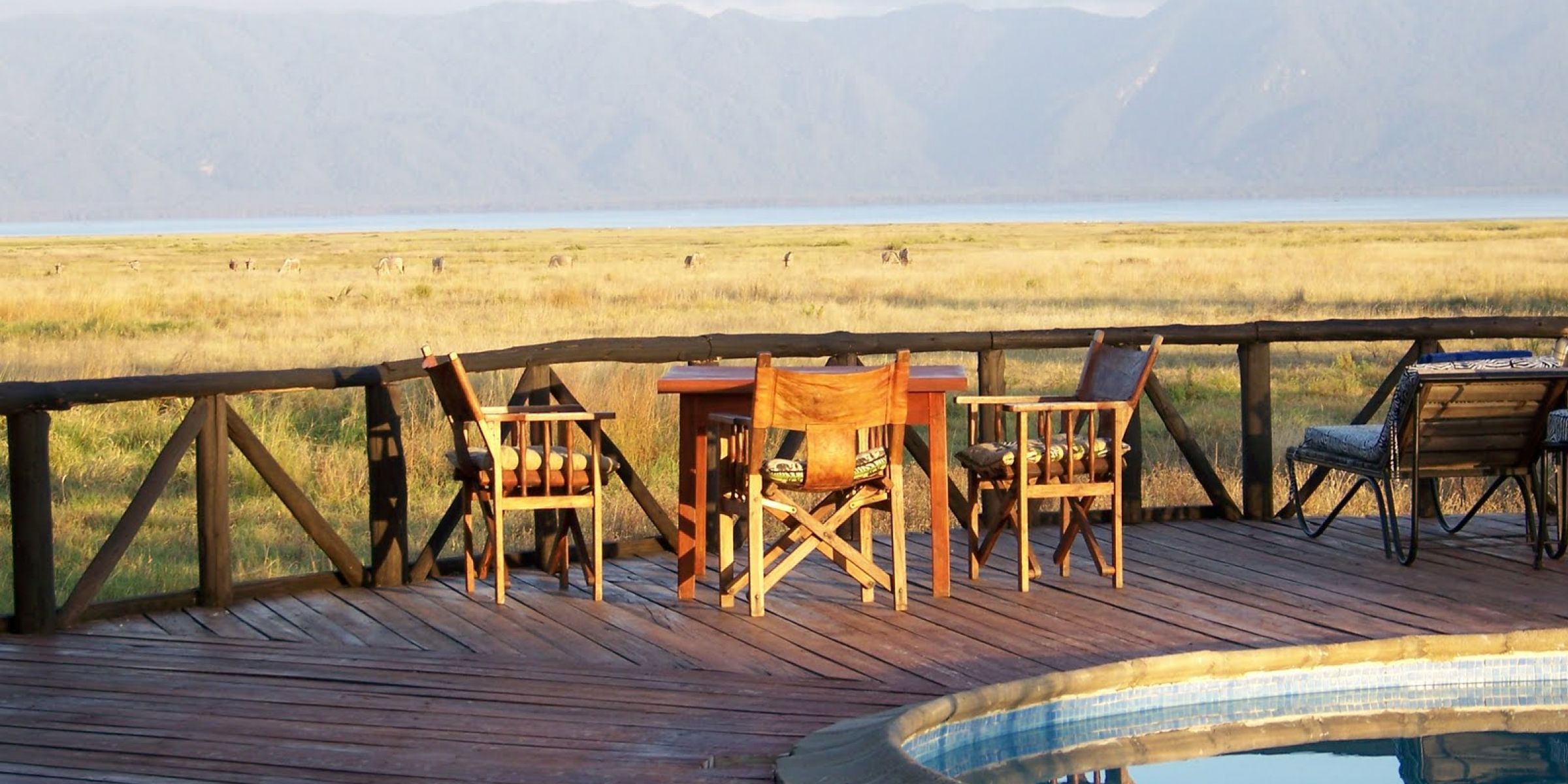 The pool deck with beautiful views at Maramboi Tented Camp, Tarangire National Park, Tanzania