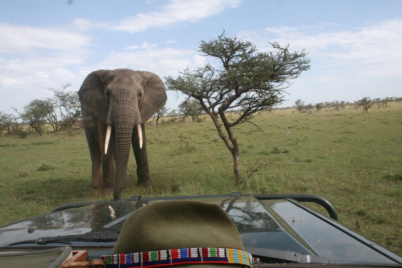 Elephant encounter on a game drive at Naboisho Camp, Masai Mara National Park, Kenya