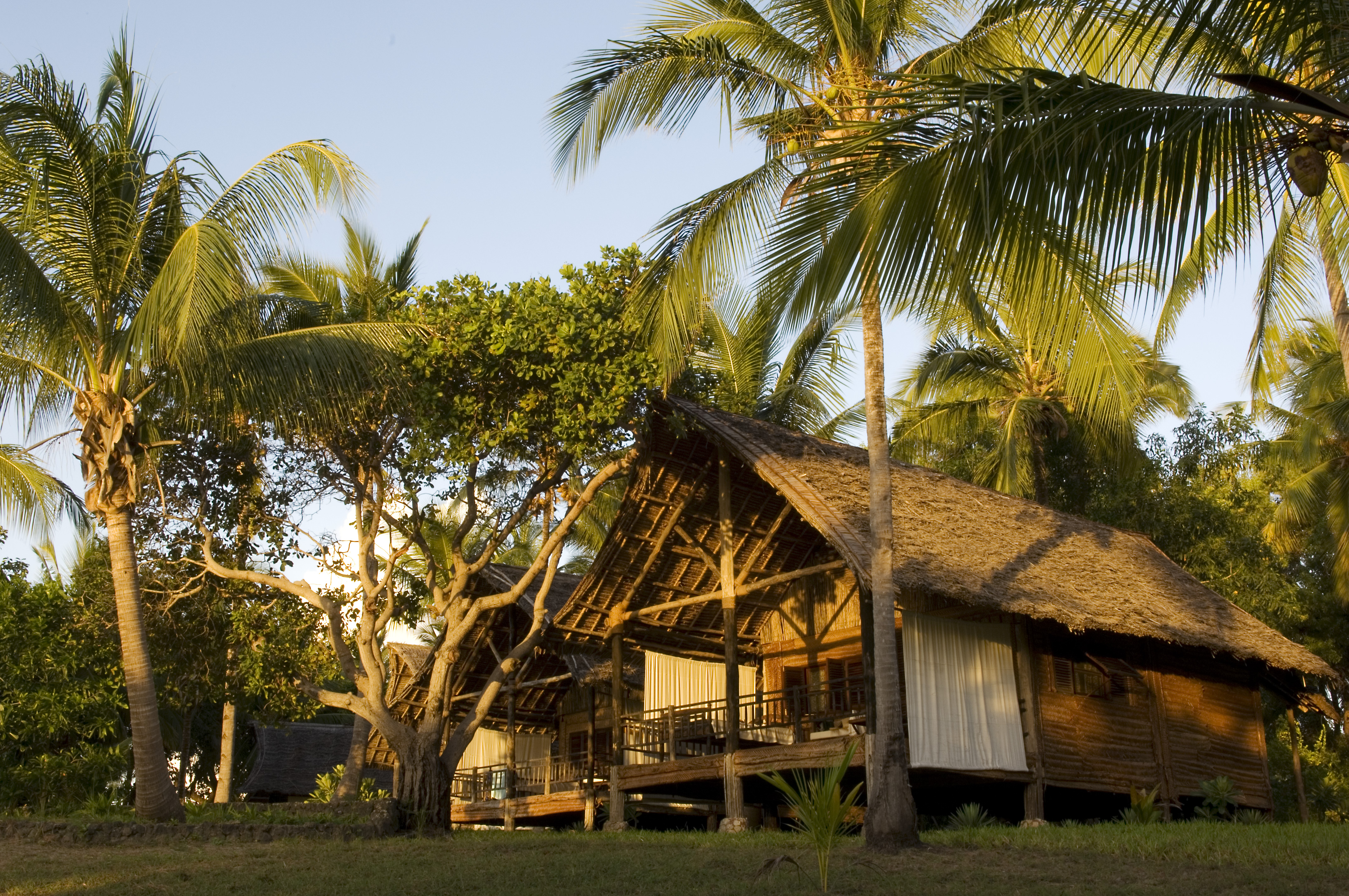 The bungalows sit amid the swaying palms at Pole Pole Bungalow Resort, Mafia Island, Tanzania