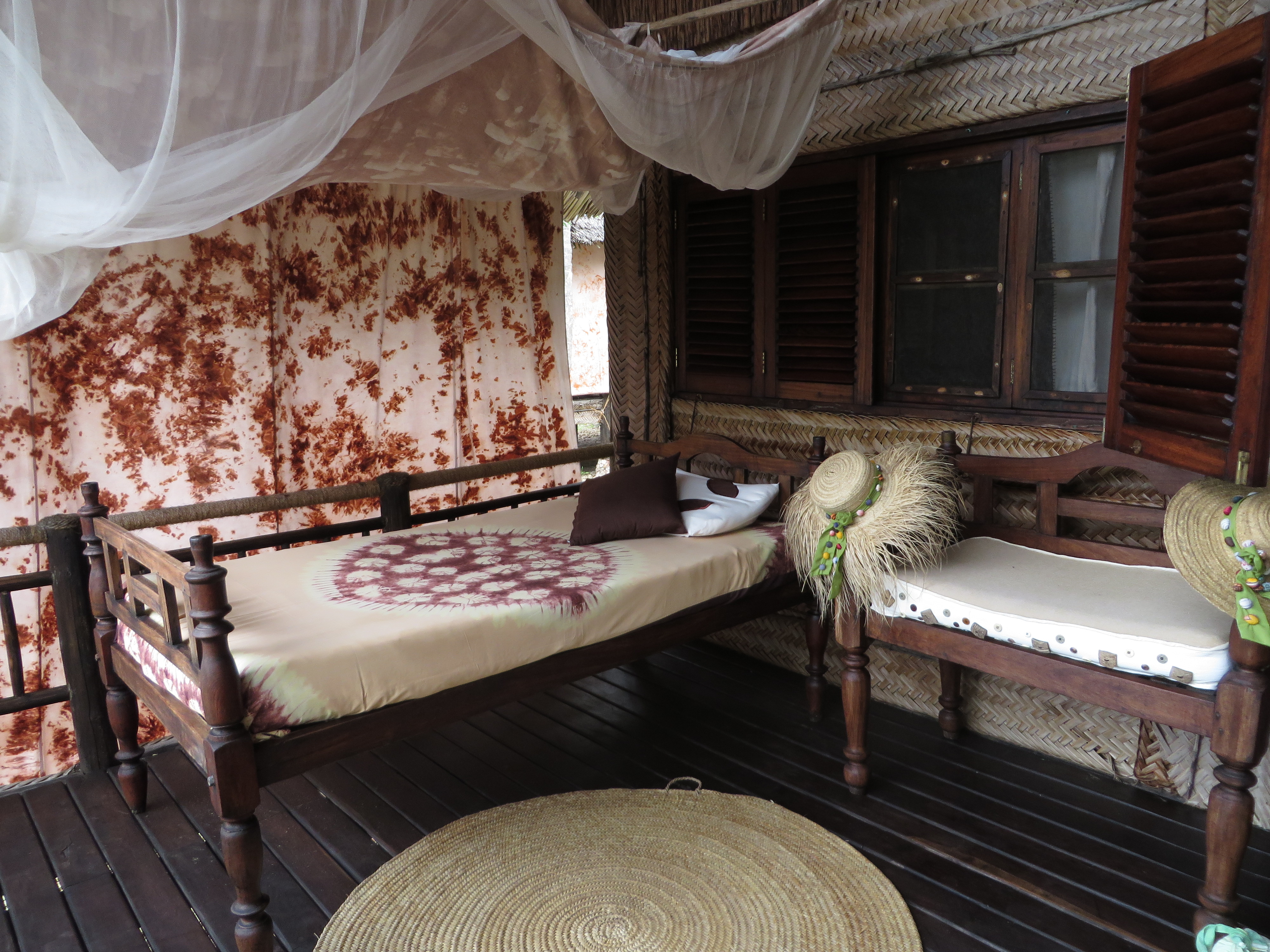 A comfortable outdoor area to lounge at Pole Pole Bungalow Resort, Mafia Island, Tanzania (Mango staff photo)