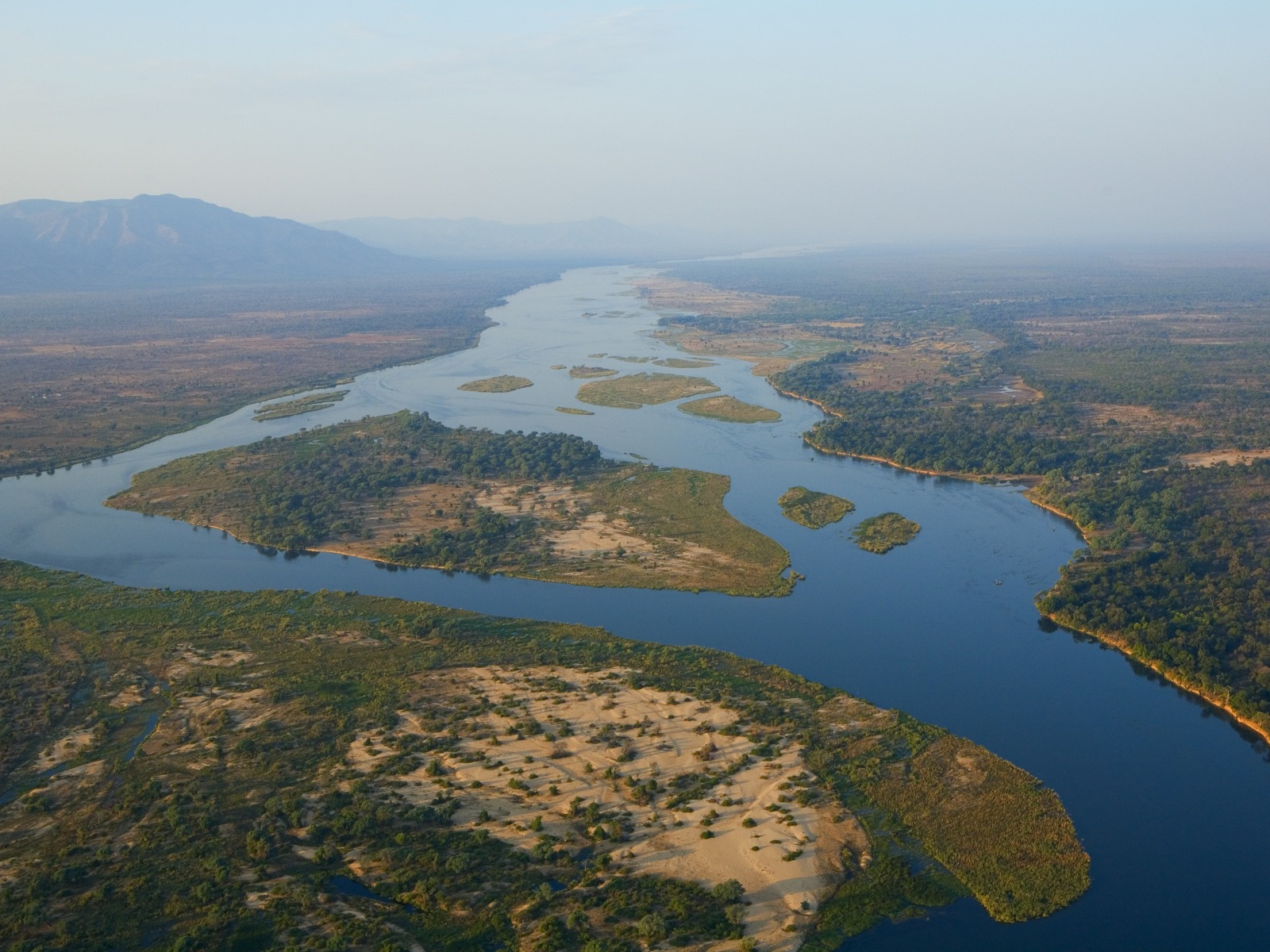 Zambezi River aerial shot- Ruckomechi Camp, Mana Pools National Park, Zimbabwe © Mike Myers