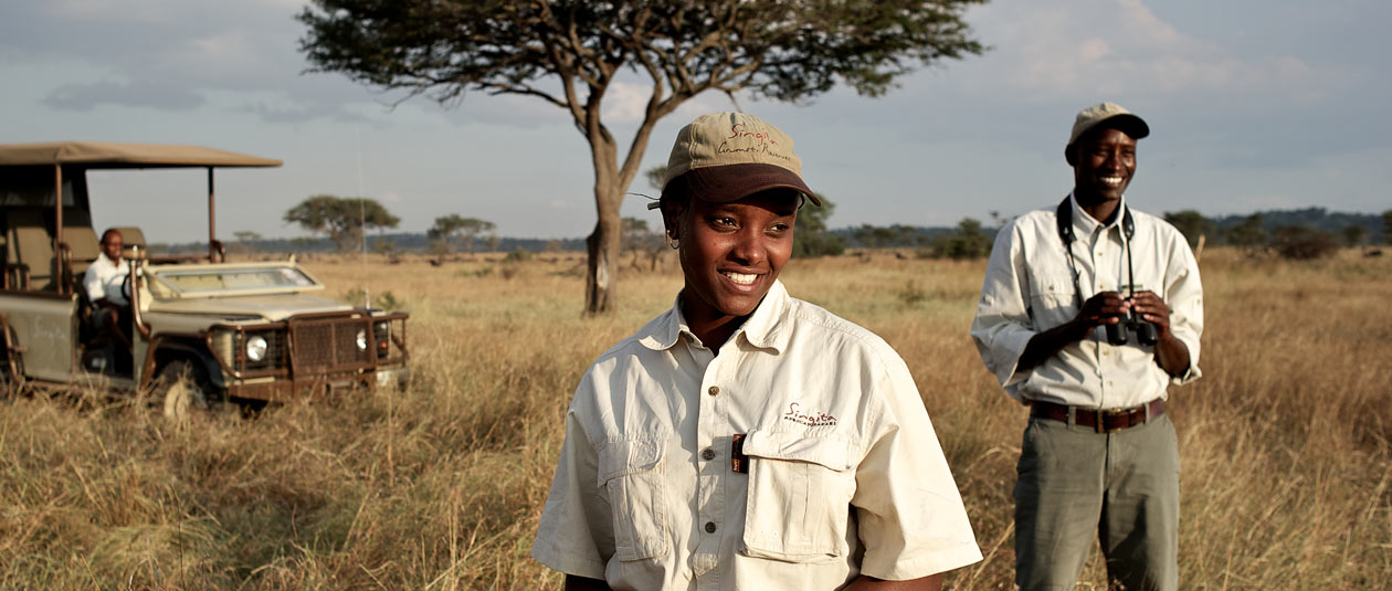 The knowledgable staff ready for a game drive at Singita Sasakwa Lodge, Grumeti Reserves, Tanzania