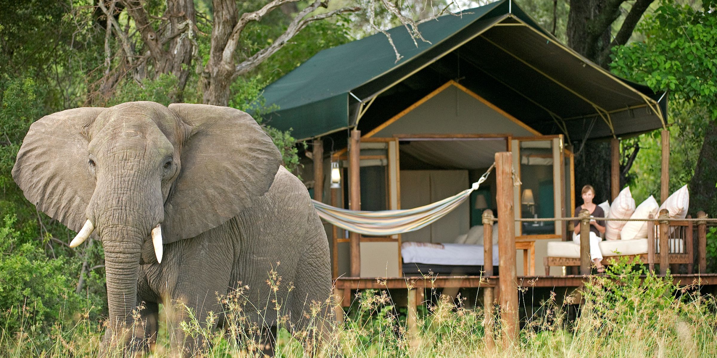 Amazing elephant viewing from the cabins at Stanleys Camp, Okavango Delta, Botswana