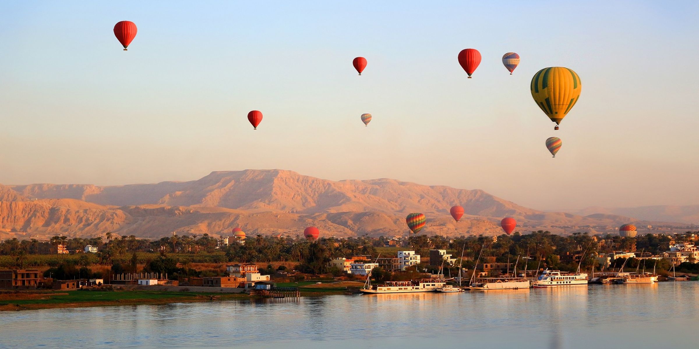 Sunrise hot air balloon over the Valley of the Kings