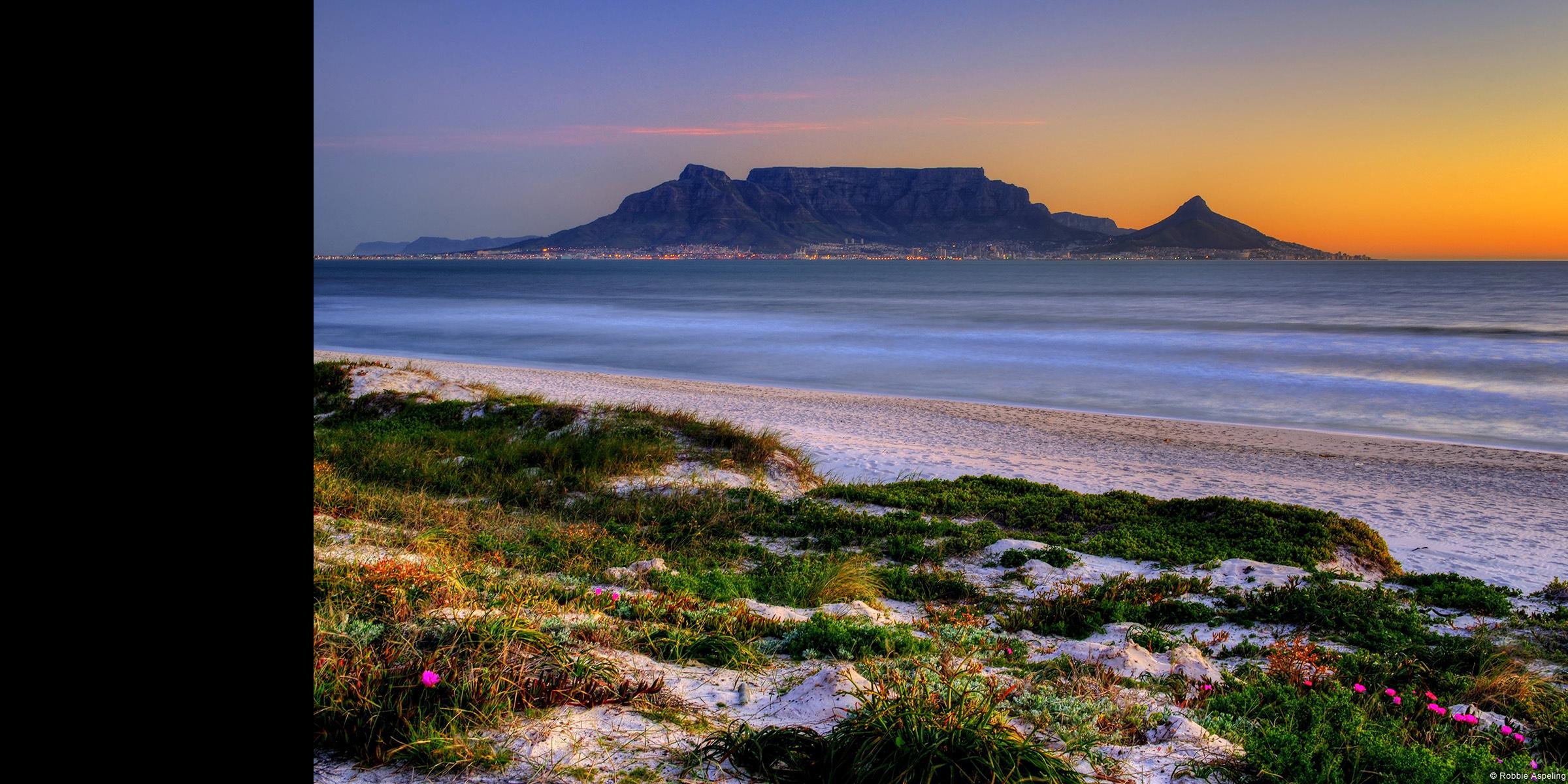The distant view of the mountain from a nearby shore - Table Mountain, Cape Town, South Africa
