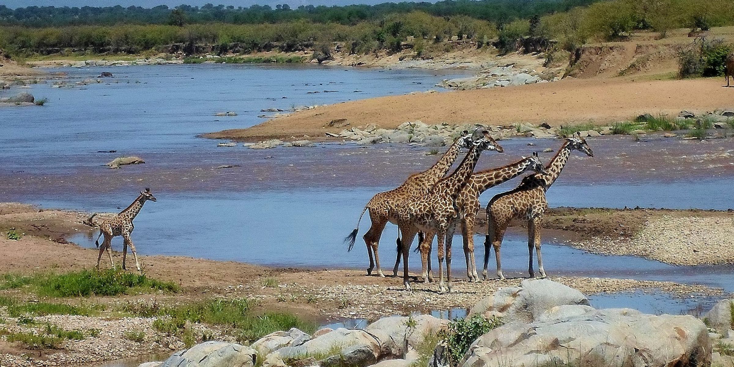 Unique River Camp Giraffes wanting to cross the Mara River
