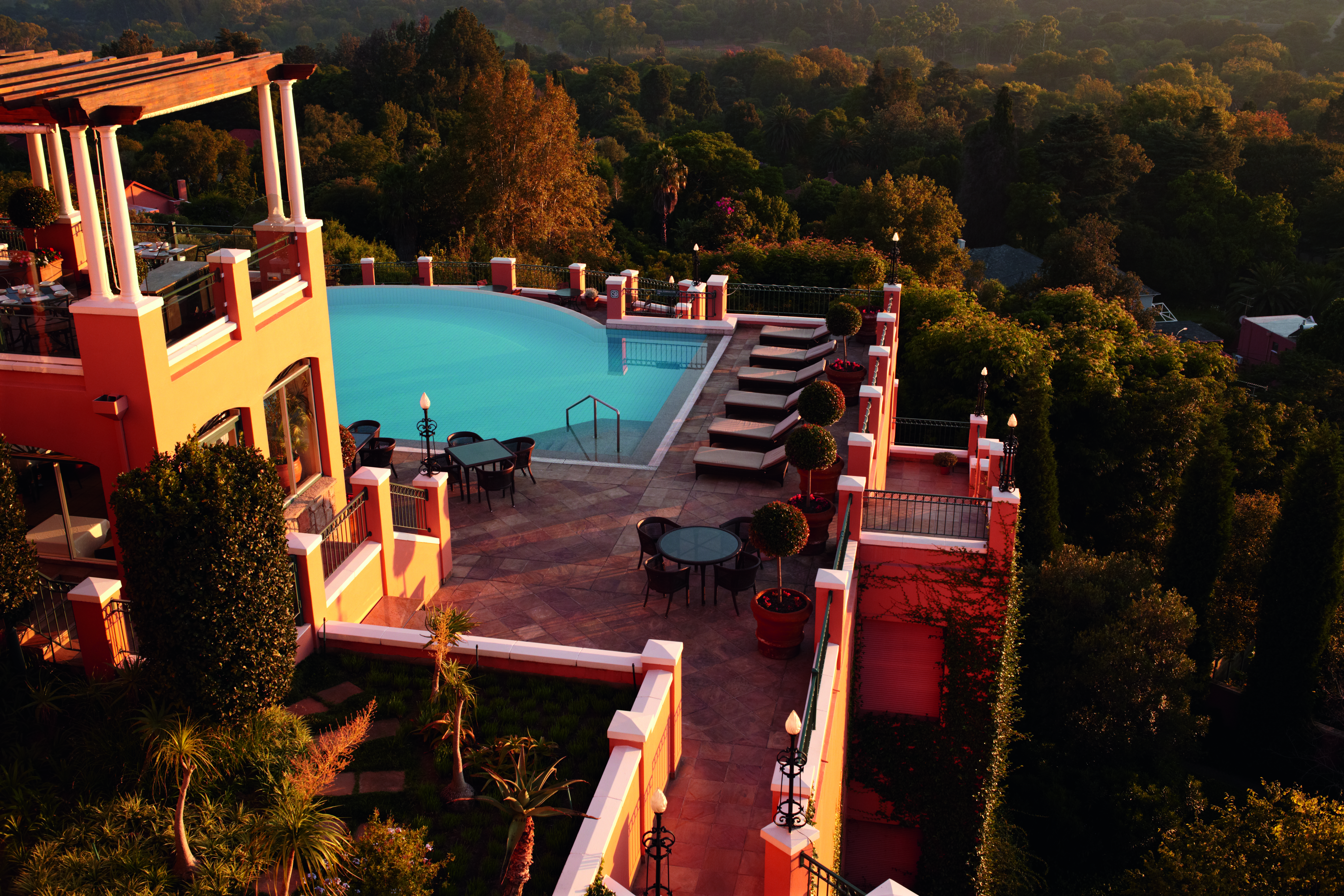 The exterior looking down onto the pool at The Westcliff, Johannesburg, South Africa